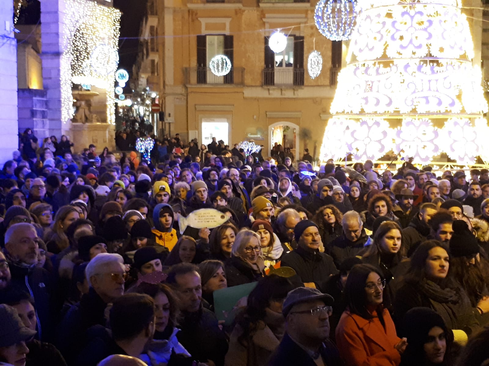 Matera, 27 Dicembre. Un fiume di Sardine ha inondato anche Piazza Vittorio nel centro di Matera. Musica, dibattiti e cultura. Tanti ragazzi, tante persone insieme, ancora una volta per fermare l’ondata di odio e intolleranza che, oggi, viene quasi giustificata. Le Sardine Lucane sono un grande gruppo di ragazzi, circa una cinquantina, che fanno da referente ogni uno per il proprio paese. In fase organizzativa, rispetto al resto delle città italiane la difficoltà è stata il dover preparare una manifestazione che convogliasse in Matera tutti i paesini lucani, con percorrenze fino a 3 ore per la capitale della cultura. Questo particolare non ha scoraggiato le giovani sardine, anzi ha contato una partecipazione sempre maggiore fino all’evento di ieri sera, dove erano presenti più di 1500 persone in piazza.