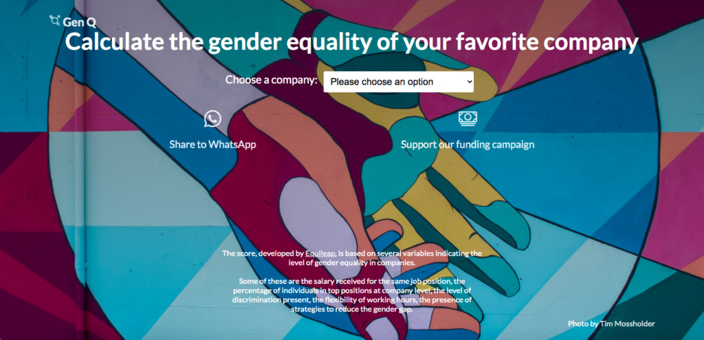I dati che potete trovare sul portale sono forniti direttamente da Equileap, una delle realtà più importanti al mondo per il tema della gender equality. Oggi stiamo lavorando con loro e con EWOB che ci ha fornito un altro database. L’obiettivo è quello di rappresentare dati sempre più realistici e saremmo molto felici se alcune delle aziende citate ci aprissero le “porte di casa” per scoprire internamente come è percepita la tematica. Pensiamo fortemente che la trasparenza sia la chiave di lettura di questo problema e che aziende, governi ed associazioni debbano lavorare congiuntamente per risolverlo. Per quanto riguarda il portale, utilizzarlo è semplicissimo. Basta entrare sul sito https://genqapp.github.io/genq.github.io/, scegliere una delle aziende nell’elenco e verificare il loro GDI (Gender Diversity Index)