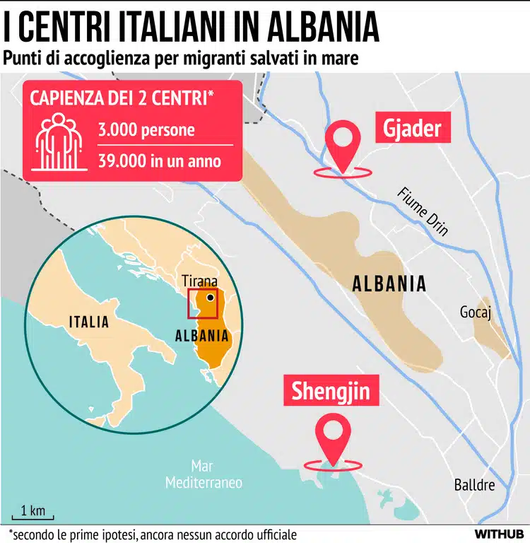 Siamo nell’ambito del protocollo di “rafforzamento della collaborazione in materia migrazione”, concluso fra Roma e Tirana nel novembre 2023.