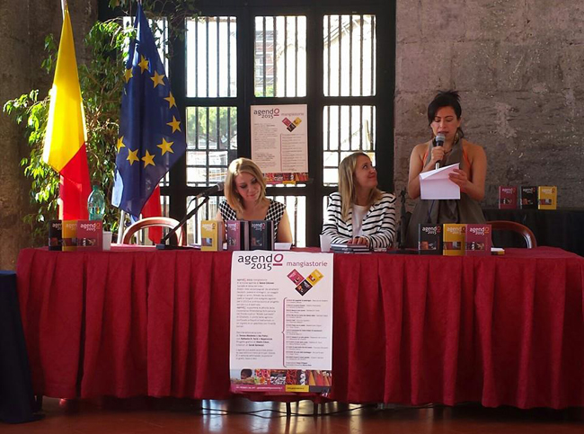 AgendO 2015 MANGIASTORIE celebra questo importante anniversario con i contributi originali di scrittori, giornalisti e storici dell’alimentazione Giovanni Serritelli. Maurizio de Giovanni (Gennaio – Gli spaghetti di pomeriggio), Stefano Piedimonte (Febbraio – La prova d’amore), Raffaella R. Ferré (Marzo – Amore è una cucina), Gabriele Frasca (Aprile – Ma se è la carne che ritorna verbo), Vincenzo Esposito (Maggio – Fatti), Massimiliano Virgilio (Giugno – Pasta con la madre), Serena Venditto (Luglio – L’occasione fa l’uovo frittata di maccheroni), Alessandra del Giudice (Agosto -Domani è un altro giorno), Raffaella R. Ferré (Settembre – Il resto della carne), Francesco Romanetti (Ottobre – Il menù della fine del mondo) – Patrizia Rinaldi (Novembre – Gli occhi dello scarafaggio) e Giovanni Serritelli (Dicembre – Essere il Cuoco Galante).