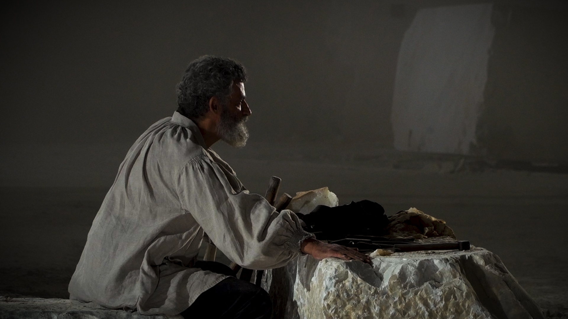 Un progetto ambizioso che intende cambiare il concetto di documentario d’arte, in cui sono i protagonisti stessi della storia a parlarci in prima persona attraverso una particolare struttura narrativa articolata su quattro livelli, infatti oltre alle bellissime immagini della produzione scultorea e pittorica di Michelangelo e alle scene di ricostruzione storica della vita dell’artista, veniamo trasportati in due luoghi statici che trascendono il tempo e lo spazio. Il primo è una cava di marmo, un limbo concettuale in cui Michelangelo Buonarroti, interpretato da un bravissimo Enrico Lo Verso, ripercorre gli snodi principali della sua lunga vita, raccontandoci le sue ambizioni, i suoi tormenti e la sua visionaria ricerca della perfezione. Il secondo è un limbo storico, un’antica aula universitaria dove incontriamo Ivano Marescotti nei panni di Giorgio Vasari, storico dell’arte autore delle “Vite de’ più eccellenti Pittori, Scultori ed Architettori”, che cerca di restituirci lo stupore che la vita e l’opera di Michelangelo trasmisero a lui.