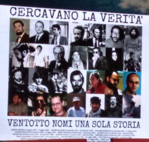 Giuseppe Fava, Cosimo Cristina, Mauro De Mauro, Giovanni Spampinato, Giuseppe ‘Beppe’ Alfano, Mario Francese e suo figlio Giuseppe, Giancarlo Siani, Mauro Rostagno, Peppino Impastato.