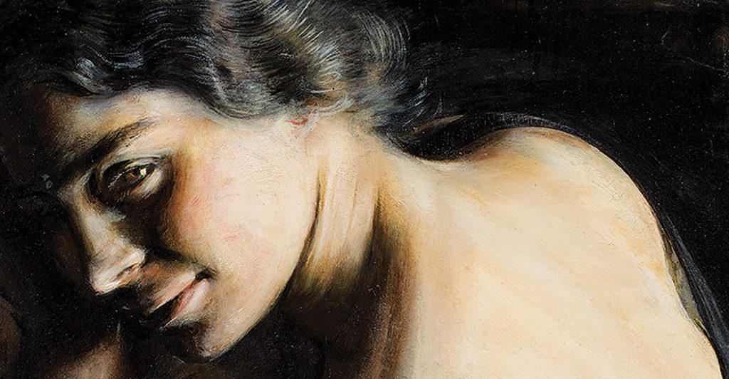 Si passa al secondo piano della mostra dedicato interamente agli occhi come specchio dell’anima. Qui se l’intento era quello di realizzare una galleria di sguardi, bisogna riconoscere che sia interamente riuscito. In uno dei due corridoi sono disposte una serie cospicua di ritratti di donne, mogli, amanti, figlie e modelle che culminano con il masterpiece dell’intera esposizione, Dubbio (1907-1908) di Giacomo Balla, il meraviglioso ritratto della moglie Elisa immortalata da un istantaneo momento di distrazione.