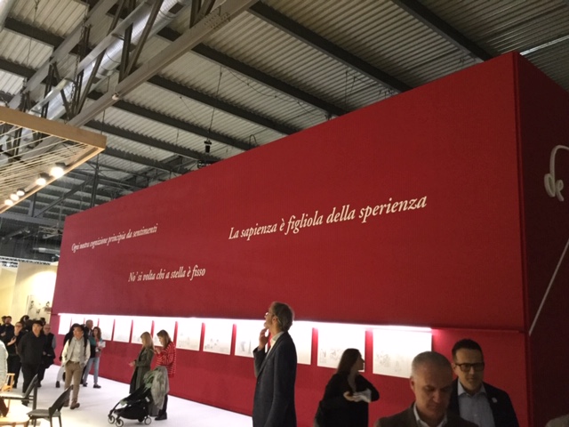 genio eccelso, con cui finiamo questo volo radente, il genio eccelso, a cui il Salone ha dedicato un doveroso omaggio nel cinquecentesimo, dando e dato vita ad un raffinato zoom, un’oasi delicata e istruttiva all’interno del Salone.