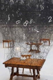 Al Silesian Muzeum, in Polonia, si trova l’impressionante installazione dell’artista Chiharu Shiota, Counting Memories. Una miriade di numeri bianchi si intrecciano e turbinano in quello che sembra un sistema neurale o una tela di ragnatela.