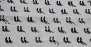 Vahit Tuna ha appeso alle pareti di un edificio le scarpe per simboleggiare la morte delle donne in Turchia nel 2018 a causa della violenza domestica. Il lavoro fa parte di Yankose, piattaforma artistica no profit avviata nel 2017 da Kahve Dunyasi, una catena di caffè turca.