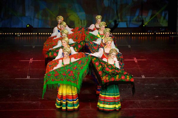 Il Russian National Show mette in scena la tradizione popolare della grande madre Russia, che attinge anche dalle sfilate militaresche; la musica, infatti, propone marce dal ritmo incalzante e l’incedere del gruppo rievoca lo schieramento delle parate. Nella musica domina il suono della balalaika, strumento a corde derivato dalla cultura mongola nel XIII secolo.