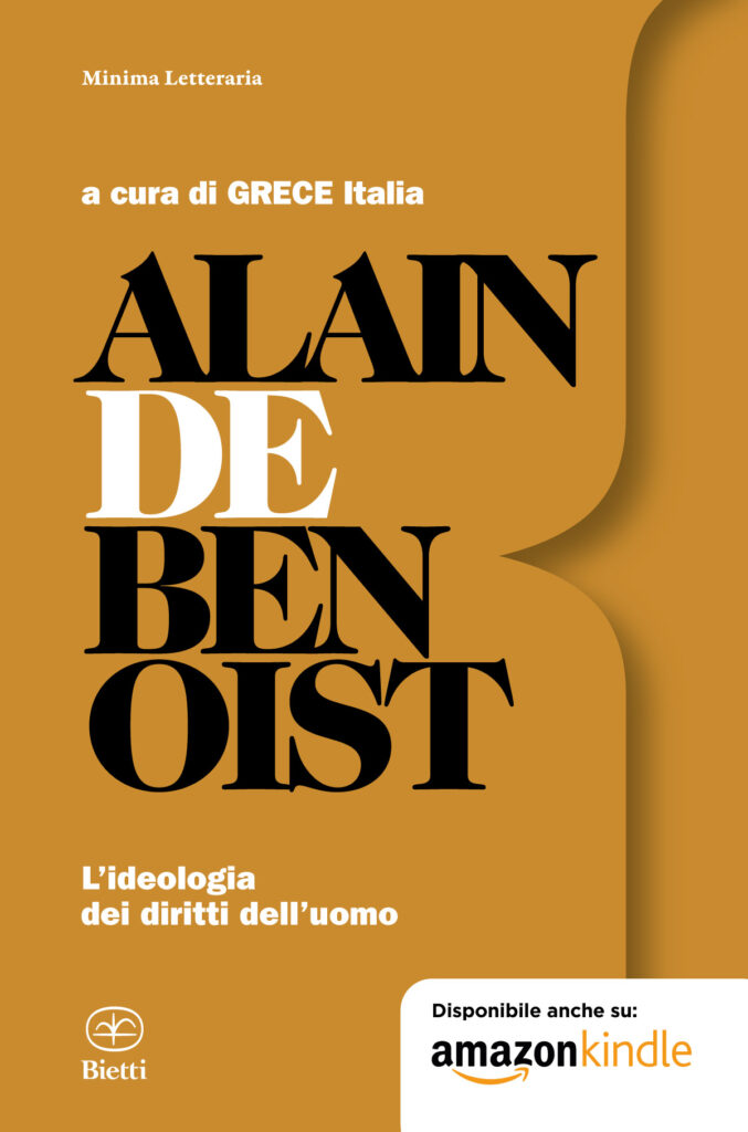 Se sposiamo questa idea, il libello Alain de Benoist. L’ideologia dei diritti dell’uomo non ci basterà e saremo costretti ad approfondire la sua lettura. La casa editrice Bietti ci consegna, all’interno della sua collana Minima Letteraria, una visione chiara e nitida di una parte dell’operato del pensatore francese, fondatore del GRECE e giornalista che più di tutti è stato definito “filosofo controcorrente”.