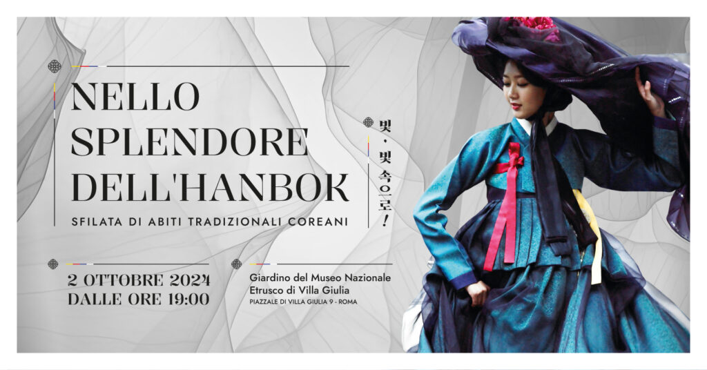 Il 2 Ottobre, alle 19, presso lo storico Museo Nazionale Etrusco di Villa Giulia a Roma, nel cortile centrale, potrete ammirare gli Hanbok dei noti brand coreani Kumdanje e Ouwr che hanno collaborato con moltissime star coreane, e non solo, del calibro di Blackpink e Suzy fino ad arrivare alle star di Hollywood come Ryan Reynolds e Hugh Jackman.