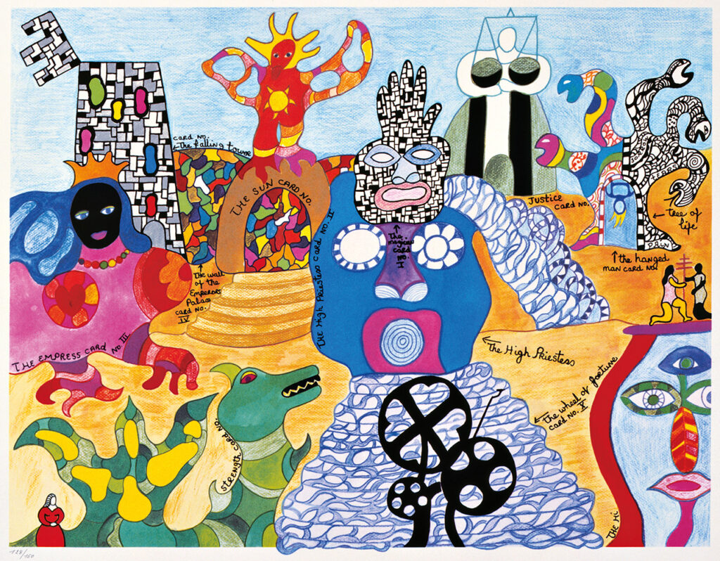 Nel 1978 inizia i lavori del giardino dei tarocchi a Garavicchio frazione di Capalbio su un terreno donatole dalla famiglia Caracciolo. Sarà il suo capolavoro, un cammino spirituale, una passeggiata esoterica durante la quale il visitatore si imbatte in draghi, principesse, oracoli, profeti, prima di trovare la via d’uscita.