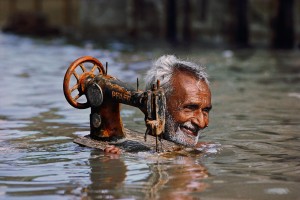 E come ogni bravo cantastorie, egli è capace di rendere ciascuno protagonista di ciò che accade: è forse questo il regalo più grande che la mostra offre. Così, tra il famoso primo piano della Ragazza afghana e quello di un nomade della tribù Rabari del Rajasthan, quasi per osmosi ci si trova immedesimati in uno sguardo nuovo, «oltre lo sguardo» di un giudizio spesso vacuo, oltre lo sguardo di una morale solidale spesso astratta. È il caso di una foto, scattata nel 1983 in India dopo un monsone: ritrae un sarto con l’acqua fino al collo, che ha appena perso tutto del suo negozio, riuscendo a salvare solo una vecchia macchina da cucire, sulla quale è incisa la marca. Qualche settimana dopo, grazie a questa foto la casa produttrice ha fatto recapitare al sarto una macchina da cucire nuovissima, per aiutarlo a ricominciare. L’inquadratura di questa foto (e di moltissime altre) è la medesima del soggetto, e ciò indica più di una scelta tecnica: conoscere vuol dire com-pro-mettersi o, per dirla con una delle Cinque massime di Steve, «per fare delle buone foto devi stare dentro l’acqua».