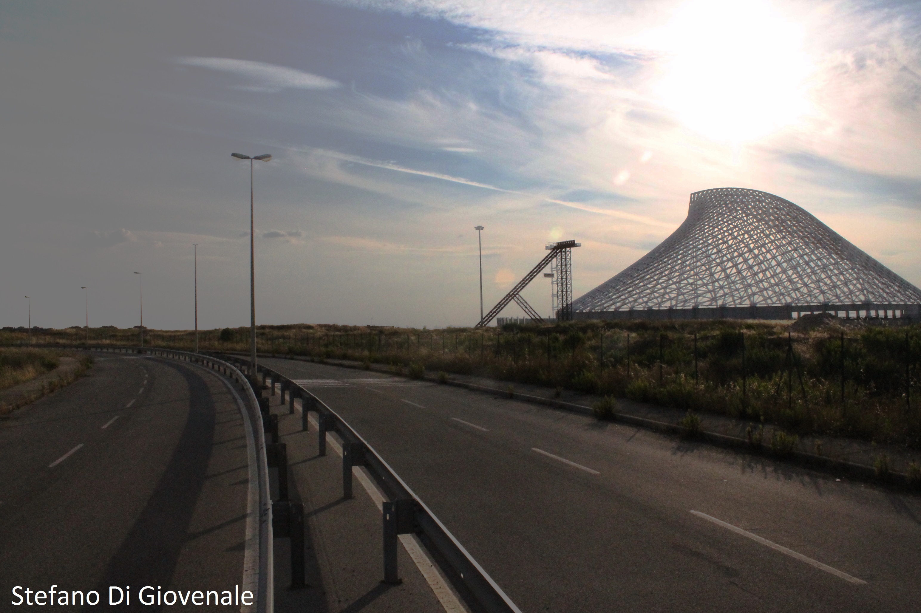 Che cos’è quell’enorme costruzione simile ad una gigantesca piramide bianca vicino all’autostrada Roma-Napoli a sud della Capitale? La risposta più appropriata sarebbe dire che è “una lunga storia”. Solitamente questa espressione viene usata per chiudere un argomento, per far scivolare via da una conversazione un tema o troppo noioso o troppo scomodo. Eppure chiudere così la questione per quello che doveva essere la grande Città dello Sport di Roma equivale ad una capitolazione della nostra coscienza civile, a chiudere gli occhi davanti a ciò che, per lo meno per la sua mole, non si può non vedere.