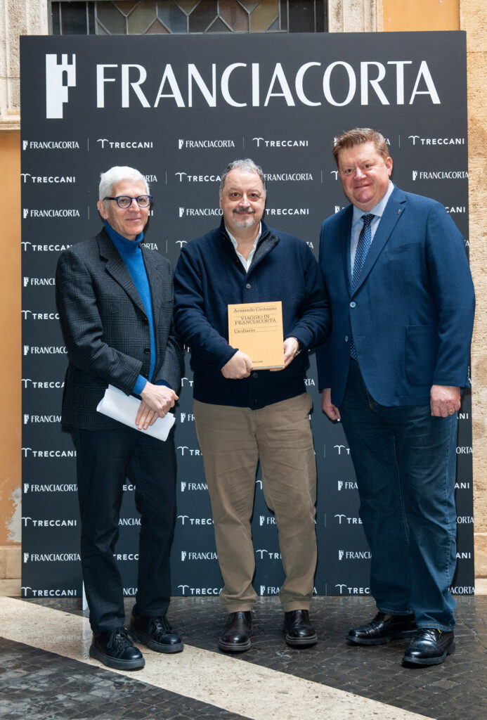 Il 26 novembre, a Roma, Treccani e Franciacorta hanno presentato il volume “Viaggio in Franciacorta. Un diario” presso la sala Igea di Palazzo Mattei di Paganica, sede dell’Istituto della Enciclopedia italiana Treccani. Un diario di viaggio, una narrazione personale e appassionata, vissuta in prima persona e poi immortalata dallo sguardo esperto di Armando Castagno. Viaggio in Franciacorta è il racconto di un itinerario tra i luoghi e nelle terre della Franciacorta, arricchito dalle immagini inedite e realizzate ad hoc dal fotografo Andrea Federici. Un percorso scandito da edifici, spazi suggestivi, personaggi e paesaggi, alla scoperta di un patrimonio culturale e di una collettività articolata ma compatta, che si distingue per aver fatto di una vocazione, quella per il vino, la propria missione comune.
