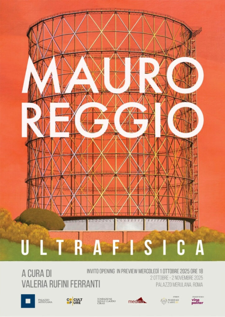 Dal 2 ottobre al 2 novembre 2025, a Palazzo Merulana presenta la mostra Ultrafisica di Mauro Reggio. A cura di Valeria Rufini Ferranti, con l’organizzazione di Medina Art Gallery e la sponsorship di Marziali Caffè. Si terrà dal 2 ottobre al 2 novembre 2025: da mercoledì a venerdì, 12.00-20.00 (ultimo ingresso ore 19.00). Sabato e domenica: 10.00-20.00 (ultimo ingresso ore 19.00)