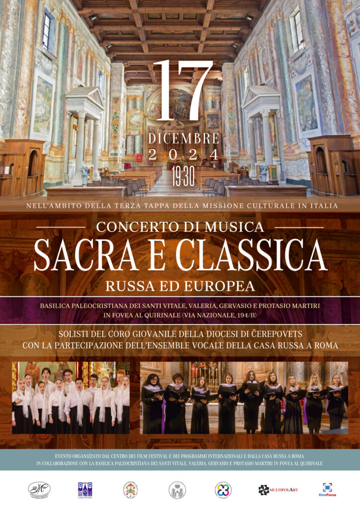 Il 17 dicembre alle ore 18.30, nell’ambito delle celebrazioni del 15° anniversario della Chiesa Ortodossa di Santa Caterina d’Alessandria, alla Basilica di San Vitale a Roma, in via Nazionale 194/B si terrà un concerto di musica sacra e classica eseguito dai solisti del Coro giovanile di Čerepovets, coro giovanile della diocesi città di Čerepovets e dall’Ensemble vocale della Casa Russa a Roma. In programma i canti spirituali per il coro di Pavel Česnokov, Aleksandr Grečaninov e altri compositori.