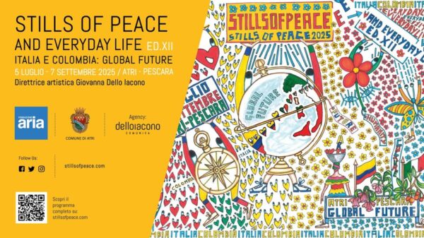 La rassegna internazionale di arte contemporanea Stills of Peace and Everyday Life torna per la sua dodicesima edizione e accoglie quest’anno una nuova protagonista d’eccezione: la Colombia. Dal 5 luglio al 7 settembre 2025, le città di Atri e Pescara ospiteranno un fitto programma di mostre, incontri e riflessioni, nel segno della diplomazia culturale e […]
