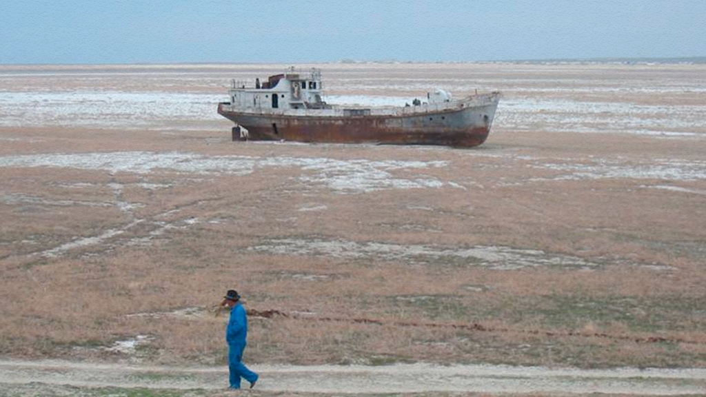 Dal 1986, il processo di ritiro delle acque causato dallo sfruttamento forsennato delle risorse idriche dei due immissari principali Amu Darya e Syr Darya per la produzione intensiva di cotone, a partire dagli anni cinquanta, ne ha causato il suo quasi totale esaurimento.