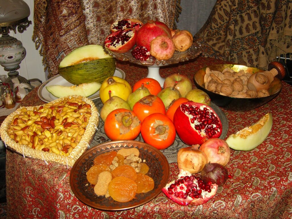 La notte di Yalda, così chiamato il natale iraniano, è sentita festività pre-islamica che coincide con il solstizio d’inverno e vede raccolte famiglie e gruppi di amici in una notte di festa e di veglia contro le tenebre circostanti. In Occidente è conosciuta con il nome di Nowruz, la notte di Yalda (la Notte della Nascita) è una festa tra le più importanti nella vita degli iraniani e deve il suo attuale nome agli influssi del primo cristianesimo.