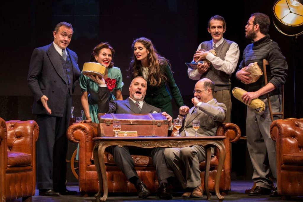 Sul palco un campionario della piccola borghesia di guerra: ci sono Vittorio e Sofia, padroni di casa (Ruben Rigillo e Marianella Bargilli), c’è il giovane Pietro, tornato cieco dal fonte (Francesco Bonomo), l’esuberante e concreto borsanerista Andrea (Maurizio Donadoni), il pauroso dottore (Gianluca Ramazzotti), poi Vincenzo, smaliziato – e omosessuale – professore di filosofia (Emanuele Salce) e infine Francesca, giovanissima vedova di guerra con simpatie partigiane (Silvia Siravo).