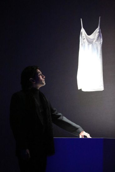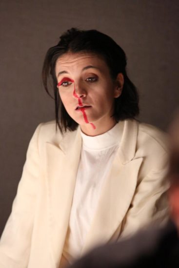 Quello che va in scena è un Caligola rivisitato, meglio ancora interpretato. Caligola viene, infatti, interpretato da una donna, questa la peculiarità che salta subito all’occhio dello spettatore, quando l’imperatore entra in scena con una voce straziata dal dolore, trascinando il suo stesso corpo e un lenzuolo bianco macchiato del sangue di Drusilla. Il ruolo interpretato da una donna non suscita perplessità, perché la caratterizzazione di genere in scena non si percepisce. Caligola è portato in scena da un’attrice, ma non è una donna, così come non è un uomo, forse è un androgino di platonica memoria, un essere completo e perfetto da un lato, capace di cogliere tutte le sfumature di un’emotività che scende nella più tetra profondità dei sentimenti, un essere pieno e al contempo totalmente vuoto, indifferente a tutto, apatico.