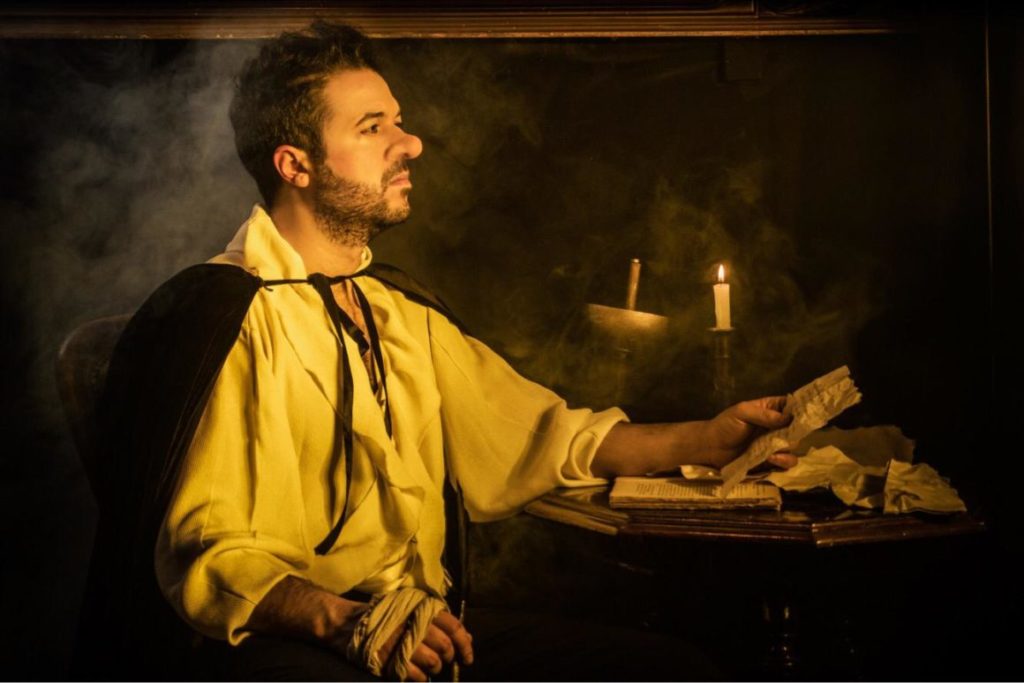 Nei silenti spazi delle Stanze Segrete di Roma l’epitaffio del signor di Bergerac è inciso sull’ultima delle infinite lastre tombali che giacciono nel cimitero della memoria di questa opera immortale. Lo spirito di Rostand qui ritorna a vivere nel suo capolavoro grazie alla regia di Matteo Fasanella, alla sua quarta ripresa. Un successo che travalica le fatiche di un teatro oggigiorno frammentato, ma che ha il dono di celare in giro per il paese, dentro un oceano in tumulto, grandi perle di sublime valore. Il racconto dell’antieroe francese prende forma e lo spettatore può sentirsi libero di emozionarsi dinanzi alle vicende dello spadaccino dal naso prominente, follemente innamorato della cugina Rossana (Virna Zornan). Cyrano, incapace di confessare il proprio amore per via della sua bruttezza, decide di prestare la sua ars eloquentia al bello e impacciato Cristiano de Neuvillette (Matteo Munari), del quale la cugina sembra essere innamorata. L’amore silenzioso del prode guascone troverà finalmente voce attraverso le lettere da lui stesso redatte, dando a credere a Rossana che siano state scritte dal giovane Cristiano, originando così il triangolo amoroso più affascinante della storia della drammaturgia teatrale.