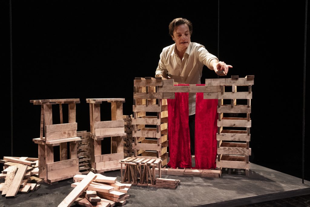 Tavola tavola chiodo chiodo: è proprio con il rumore di un martello che pianta dei chiodi in tavole di legno, che Musella inizia nella penombra lo spettacolo.