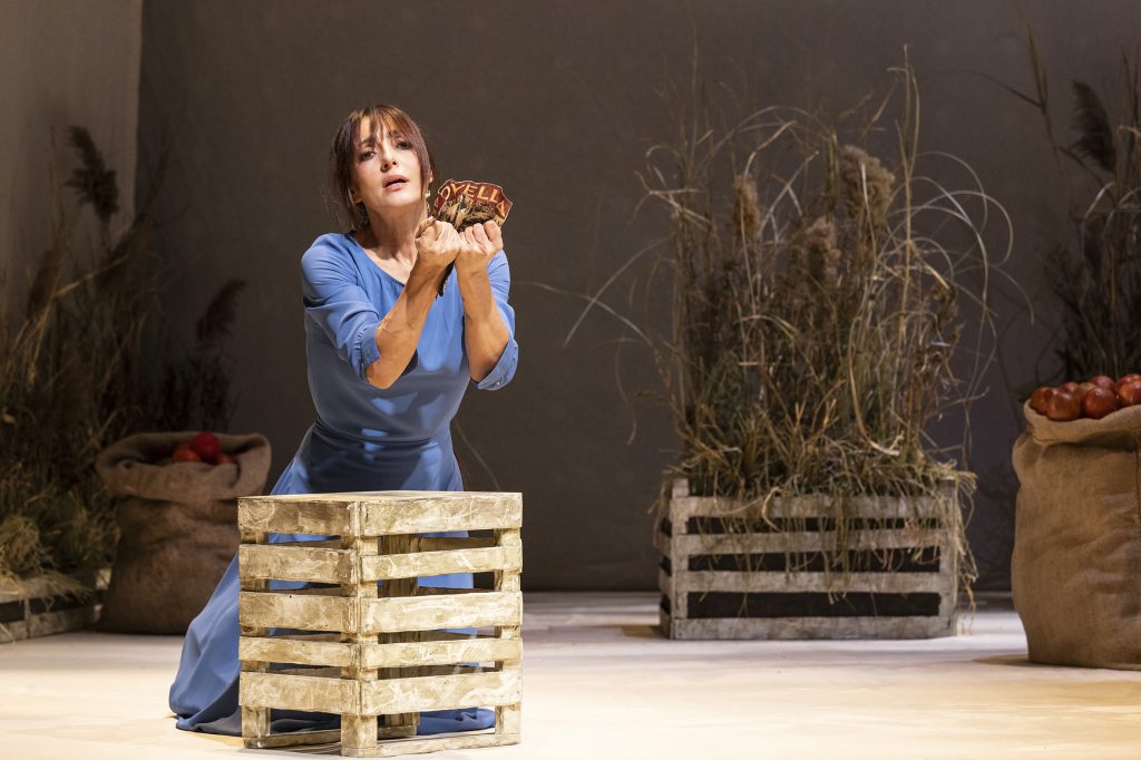 I semplici oggetti di scena di Guido Fiorato, grandi casse di legno con spighe, arbusti e frutti, rievocano un ambiente agreste. Le luci di Marco Filibeck, fanno ombra nei momenti più bui.