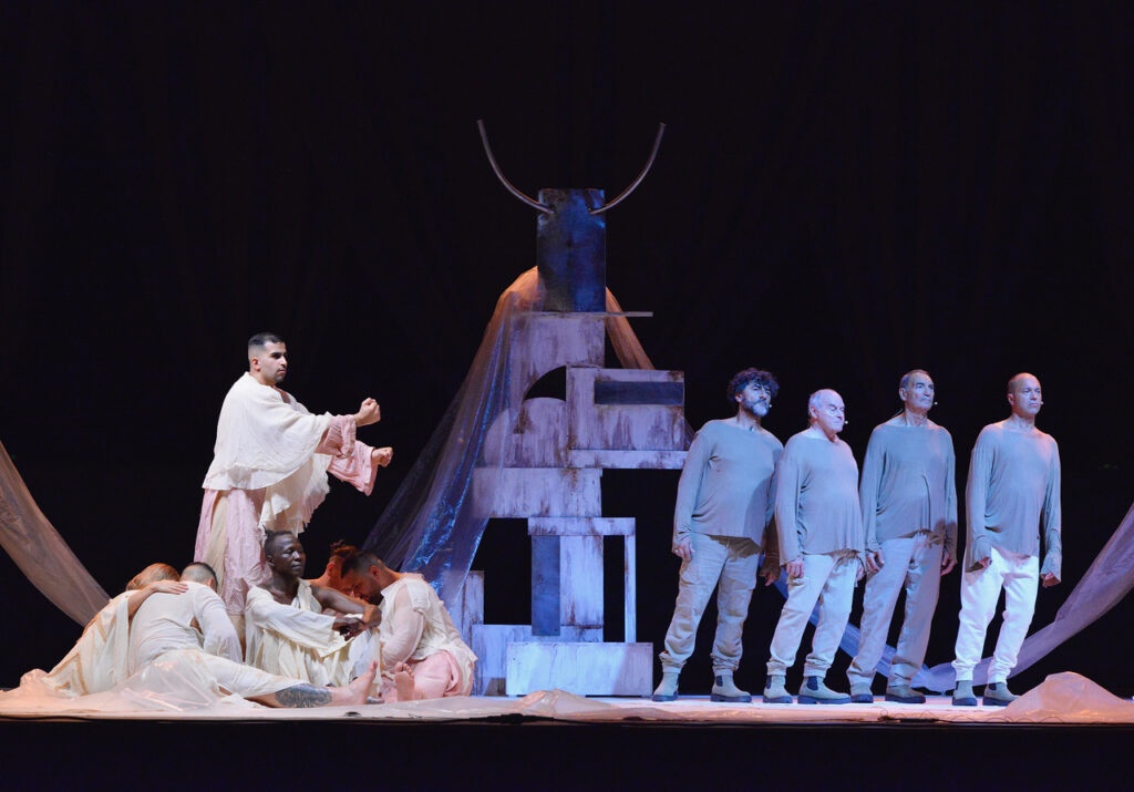 Scritta da Sofocle nel 442 a.C. circa, “Antigone” con la regia di Giuseppe Scutellà, ha come impetuoso protagonista il coro, vestito di teli e cordami che, commentando la storia, si muove su una scenografia essenziale.