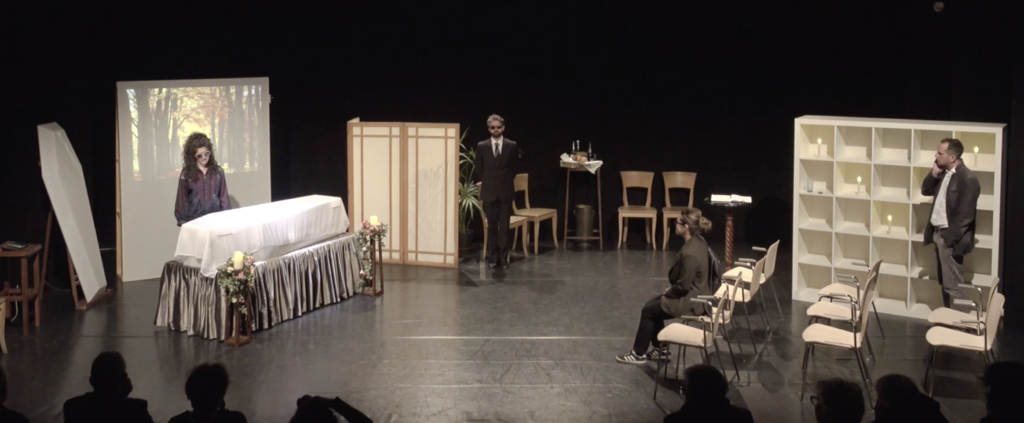 Lo spettacolo, diretto e ideato da Riccardo Pippa, è ambientato in una camera mortuaria.