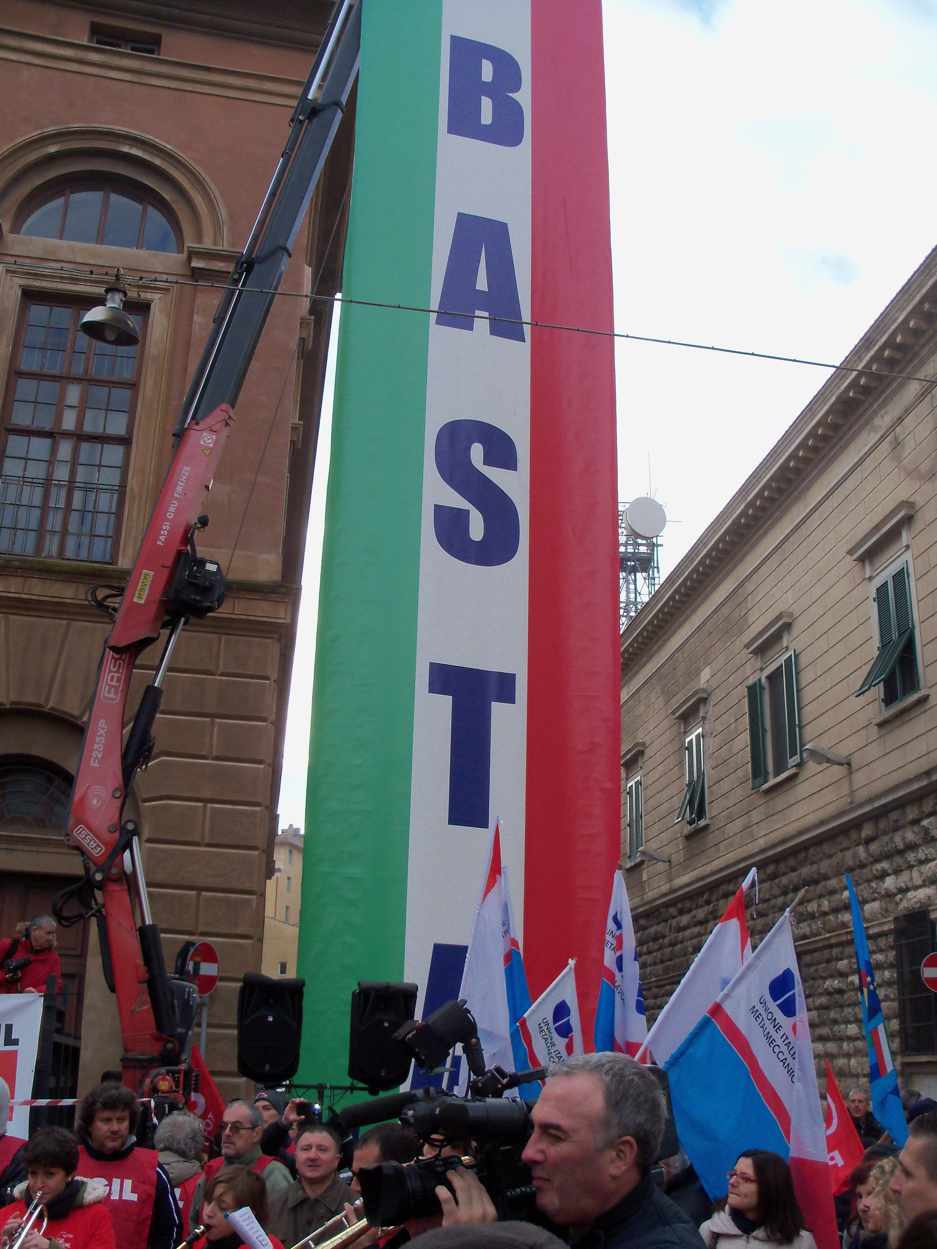 PISA – Grande affluenza nelle piazze di Toscana per lo sciopero generale indetto da Cgil e Uil contro la situazione economica attuale, il precariato e la tutela dei lavoratori. A Pisa, in piazza San Paolo All’Orto, si sono dati appuntamento qualche migliaio tra studenti, lavoratori, pensionati e disoccupati provenienti anche dalle vicine province di Massa Carrara e Lucca. Sul palco allestito per l’evento sono saliti diversi rappresentanti delle categorie maggiormente coinvolte dalla situazione economica e lavorativa attuale, quattro le istanze principali: giustizia, dignità, equità e lavoro. Significativo il grande striscione con la scritta ‘Basta’ appeso nei pressi del palco di piazza San Paolo.
