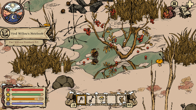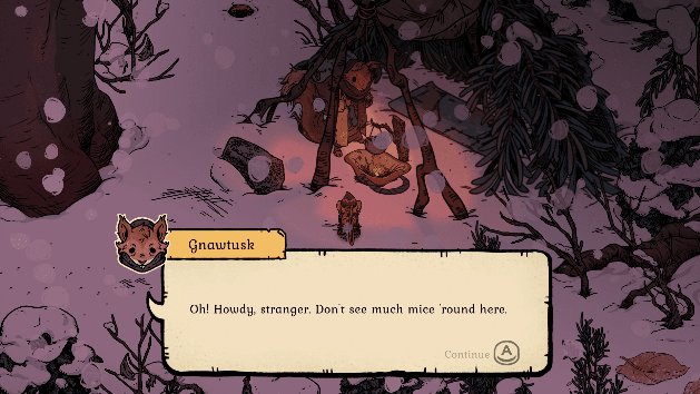 Winter Burrow è incentrato sulle vicende di questo topino che, sin dall’infanzia, ha vissuto da nomade insieme alla sua famiglia, allontanandosi sempre più dalle sue radici. Finché, tragicamente, i suoi genitori vengono a mancare e il nostro coraggioso topino torna alla casa abbandonata di famiglia, con l’obiettivo di restaurarla: sistemare le scale rotte, l’angolo coi divanetti, il giardino sotterraneo con la scorta per l’inverno e arredare casa collezionando risorse e costruendo mobilia di ogni genere.
